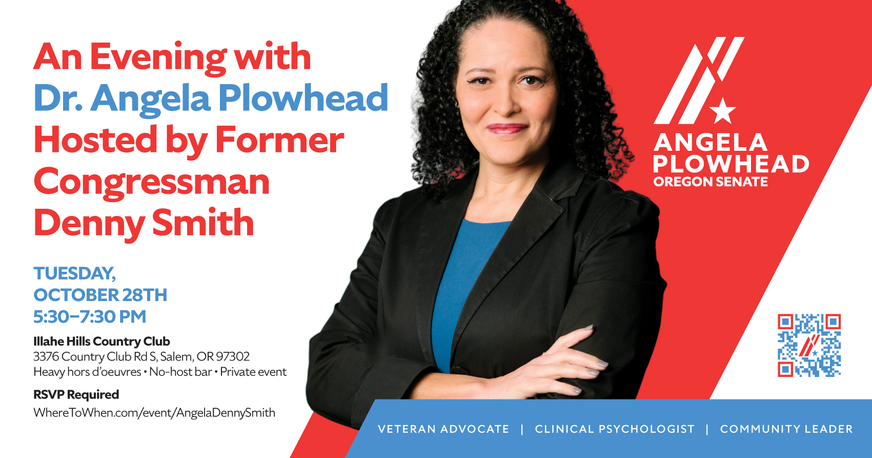 Event adress: Illahe Hills Country Club 3376 Country Club Rd S, SalemPrivate Evening with Senate Candidate Dr. Angela Plowhead Hosted by Former Congressman Denny Smith Join us for a private evening in support of Dr. Angela Plowhead, candidate for Oregon Senate District 10. Enjoy an intimate setting with heavy hors d’oeuvres, a no-host bar, and conversation with community and state leaders who share a vision for […]